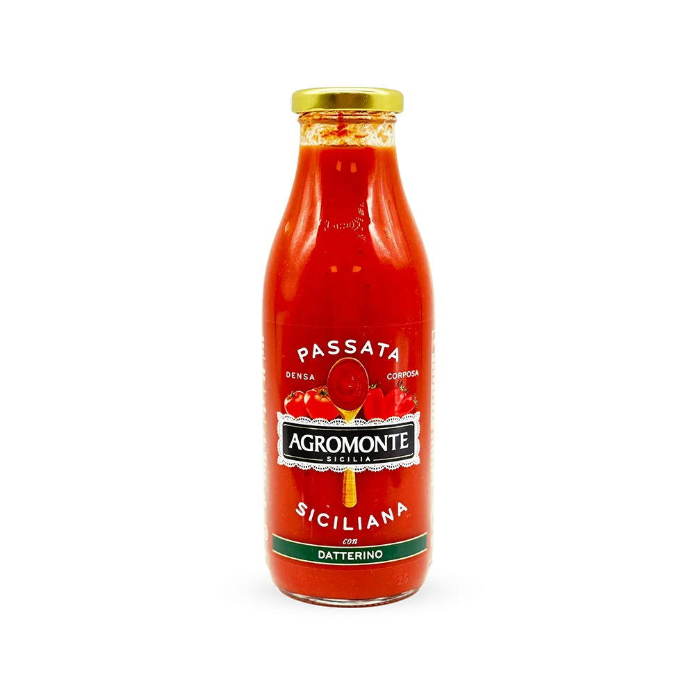 Passata z pomidorów i pomidorów Datterino firmy Agromonte wywodzi się z uwagi, jaką rodzina Arestia zawsze poświęcała doskonałej selekcji surowców, które są przetwarzane ręcznie. Staranna dbałość o uprawy, prowadzona przez wykwalifikowany personel, prowadzi do powstania produktu bogatego w smak, który pozwala nam doświadczyć słońca Sycylii w kuchniach na całym świecie.