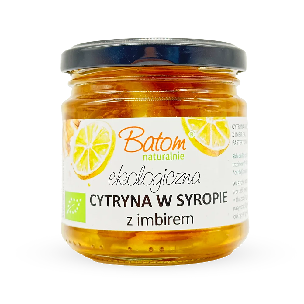 Składniki: cytryna* 41%, cukier trzcinowy* 40%, woda, imbir* (*certyfikowany składnik ekologiczny)