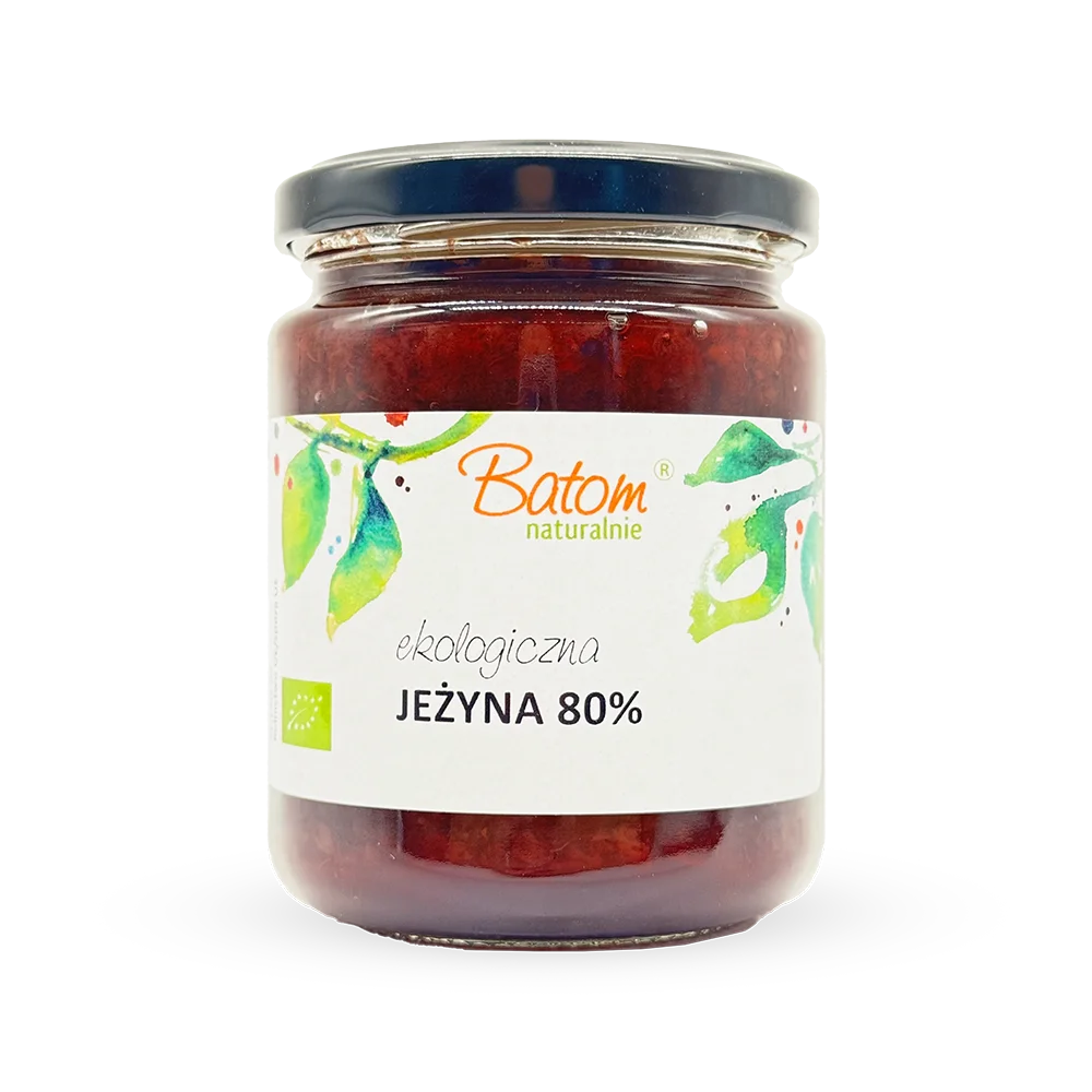 Składniki: jeżyna* 80%, koncentrat jabłkowy*, pektyna- substancja zagęszczająca (naturalny składnik owoców) (*certyfikowany składnik ekologiczny)